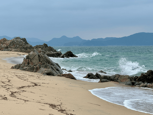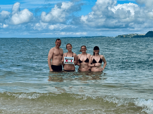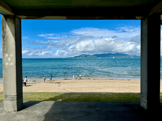 Für die Mittagspause holten wir das, wozu wir grade Lust hatten aus dem Family Mart und aßen direkt am Meer. Ich und drei andere Teilnehmer haben es gewagt im Meer zu schwimmen, das Wasser war
