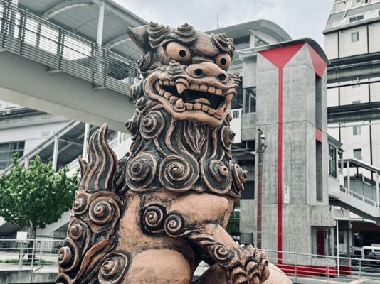 Während unseres Ausflugs erzählte uns Andreas von den "Hunde-Drachen-Figuren", die überall an den Hausdächern, Läden, Toren uvm. stehen. Diese heißen "Shisa" und sollen Unheil abhalten. Speziell in Okinawa sieht man sie sehr oft und je mehr man sich umgeschaut hat, desto öfter sind diese Figuren aufgefallen. Ein nettes Detail, was man hier in allen Formen, Farben und Größen in Okinawa finden kann.