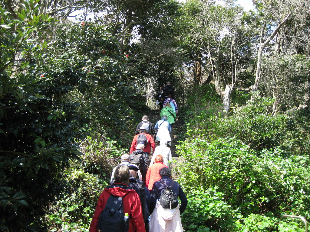 Unsere Wanderung führt uns auf einem Naturpfad auf der Steilküste am Meer entlang. Von hoch oben hat man fantastische Ausblicke auf die romantische Küstenlandschaft. Der Wanderweg gehört zum Izu-Nationalpark.